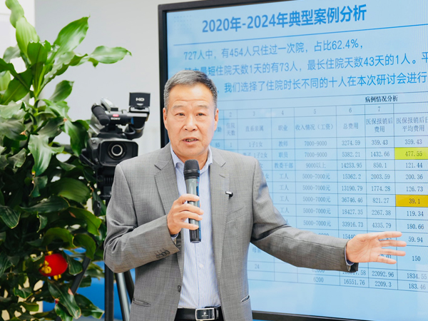 在报告中,他以2020 - 2024年期间在天津延安医院累计去世的727人为样本进行多维度详细分析。数据显示,性别上男393人,占比54%;女334人,占比46%。死亡人员中年龄最小30岁,最大106岁,80岁以上308人,占比最多,达到42.2%。在死亡原因(疾病)上,导致老人死亡的疾病共计84种,其中支气管肺炎导致死亡的老人最多,其次是冠心病,43种癌种中肺癌导致最多人死亡。727人中,有454人只住过一次院,占比62.4%,其中最短住院天数1天的有73人,最长住院天数43天的1人,平均住院天数9.8天。通过一系列的数据展示与分析,不仅清晰展现了延安医院的服务成果,更为安宁疗护的发展提供有力的数据支撑与指导建议。